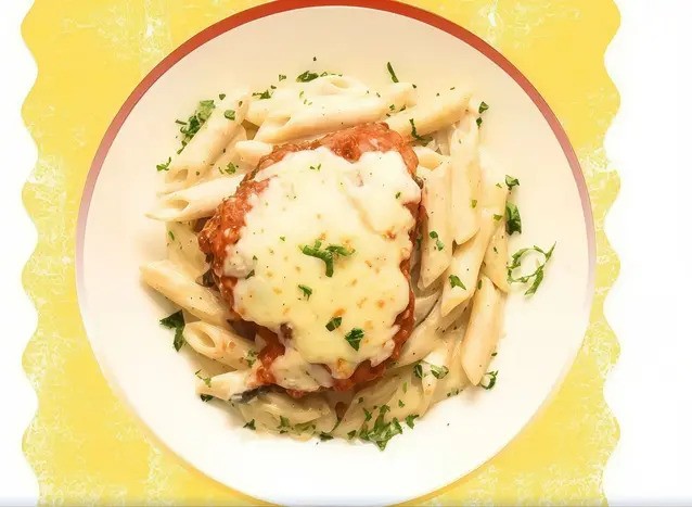 Served with cheesy pasta